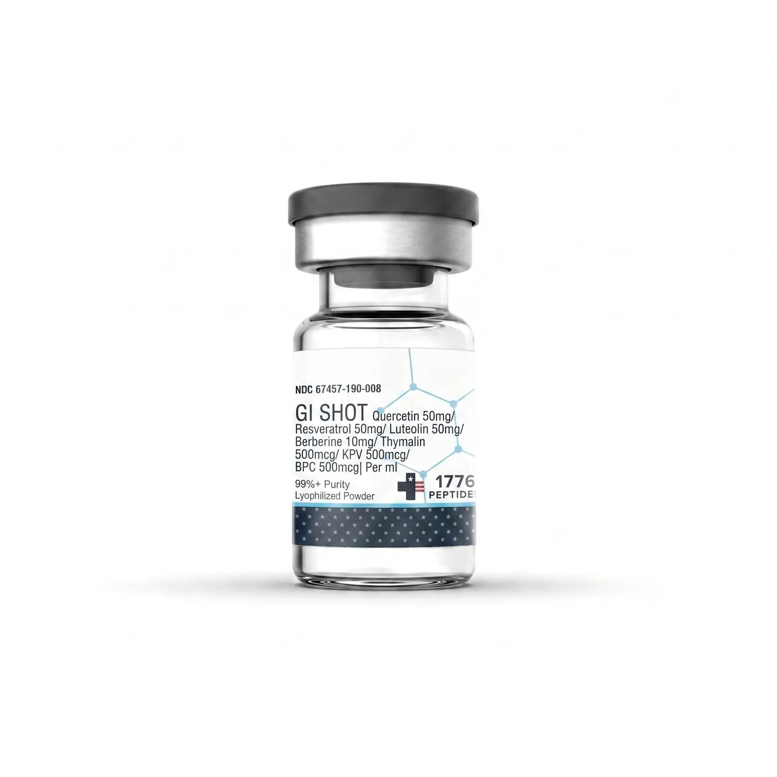 GI Shot (Gut Shot) is supplied as a purified research peptide in liquid form. Each vial is sealed for integrity and stability. This material is intended exclusively for laboratory research, analytical testing, and scientific study.
